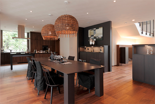 玄関から一歩足を踏み入れた瞬間から広がる、あたたかな陽だまりのような心地よさ。自然とつながりを感じられる開放感。ゲストを招いて大きなテーブルを囲むディナーパーティーも楽しめます。