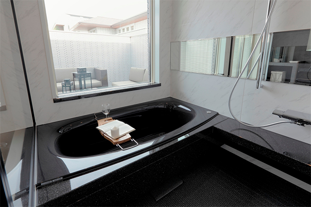 外からの視線を遮るバルコニーで、開放的なバスルーム。寒い季節も適温に保ち、ヒートショックも低減。