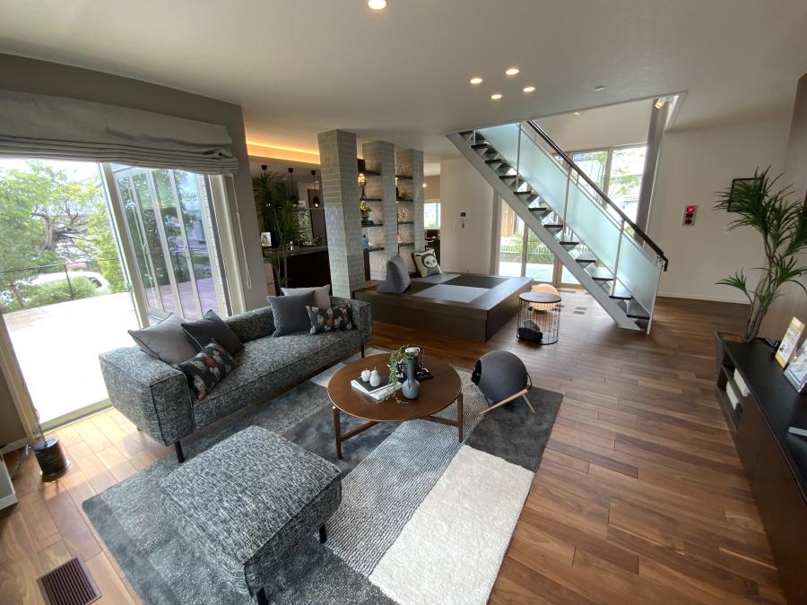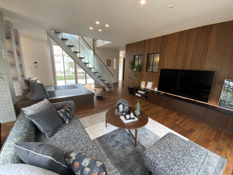 リビングから2階へ上がるステップフロアがオシャレな物件です。